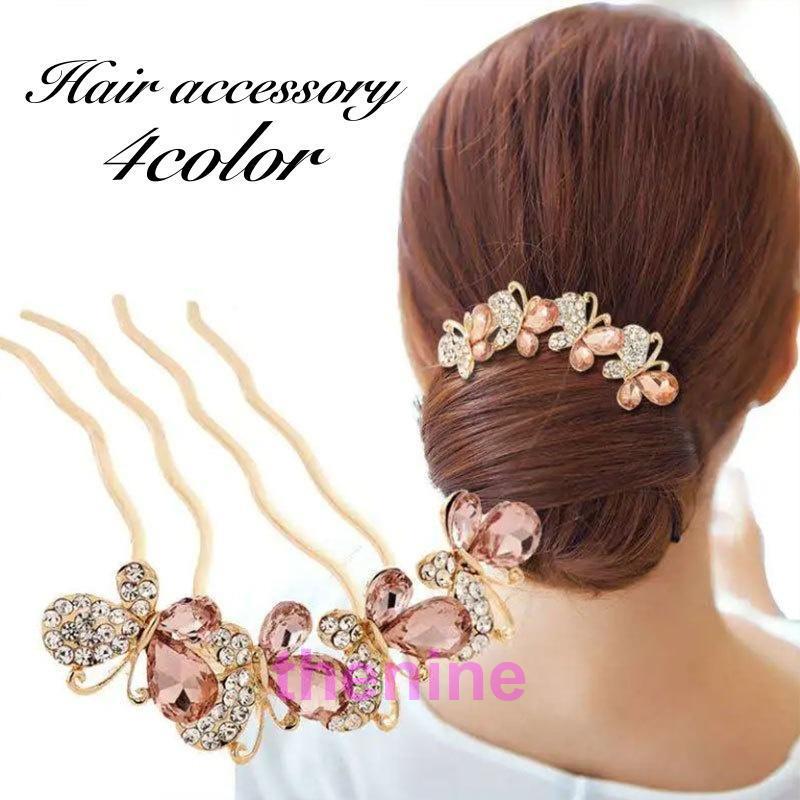 コーム ヘアコーム かんざし レディース 女性 ヘアアクセサリー 髪留め 髪飾り ヘアアレンジ 蝶 ラインストーン キラキラ 華やか エレガント 綺麗