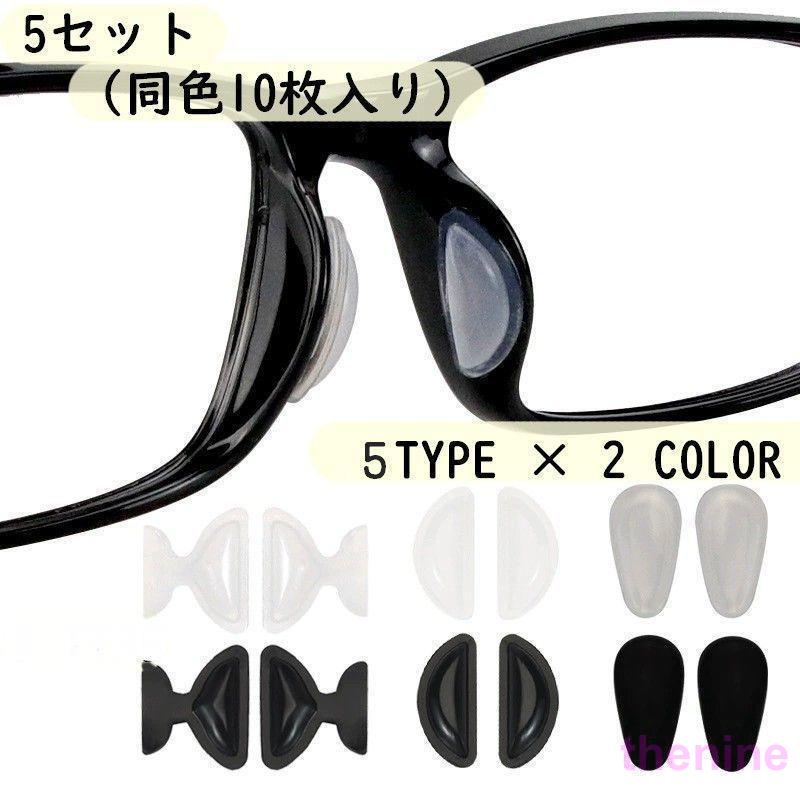鼻パッド ノーズパッド 5ペアセット 10個入り メガネ用 眼鏡小物 めがね サングラス ズレ防止 シール 貼るだけ簡単 柔らかい ソフト ずり落ち防