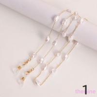 フェイクパールがおしゃれなチェーンタイプのメガネストラップ。
