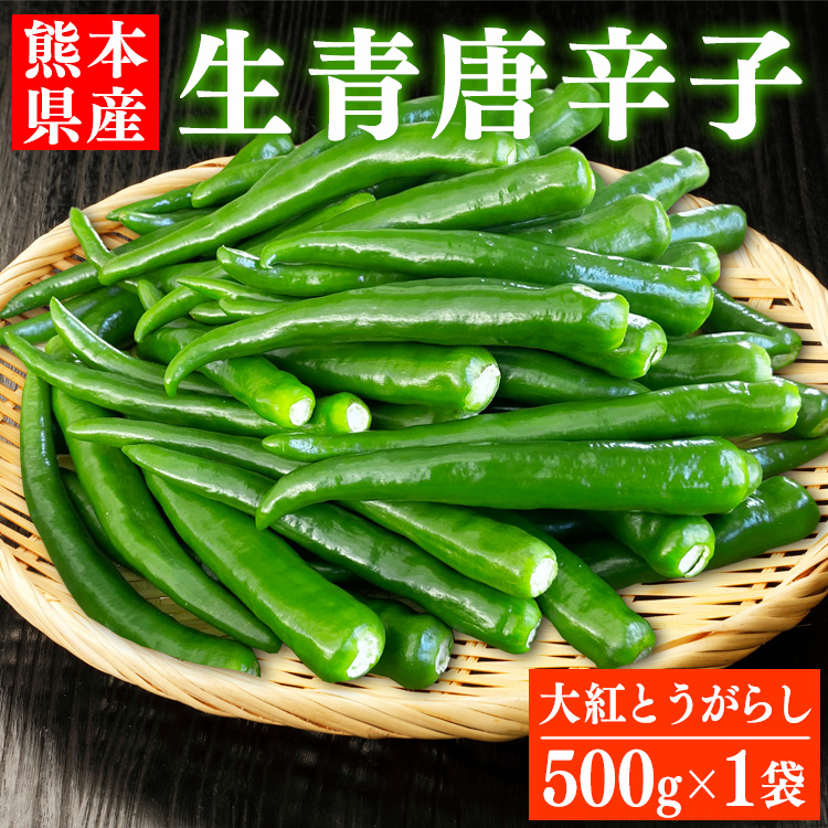 国産 青唐辛子500g×1袋 熊本県産 辛口 生青唐辛子 唐辛子 トウガラシ とうがらし【へた無し】【品種:大紅とうがらし】