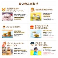 米粉(富山県産)、バター、砂糖(きび砂糖)、豆乳、玄米粉(佐賀県産)食塩、ふくらし粉、(アルミニウム不使用)
