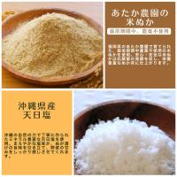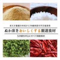 米ぬか(栽培期間中農薬不使用/福岡県産)、天日塩(沖縄県産)、山椒(福岡県産)、唐辛子(島根県産、山口県産)、昆布(北海道産)、干し椎茸(大分県産)、いりこ(大分県産)、かつおぶし(国産)