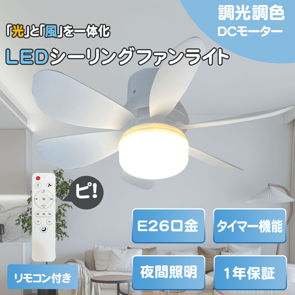 シーリングファンライト E26口金 LED扇風機 LEDファン 照明器具 シーリングライト 扇風機付き照明 シーリングファン おしゃれ 省エネ リモコン付き 工事不要