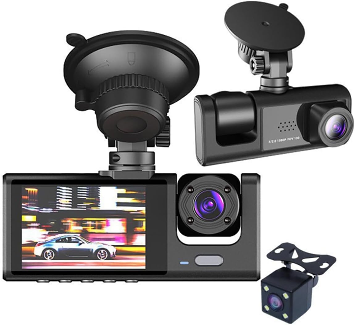 ドライブレコーダー 小型ドラレコ 車用 1080P フルHD画質 360度 全方位保護 170度超広角 3カメラ同時録画 Gセンサー搭載 暗視機能 上書き録画全国LED信号機対策