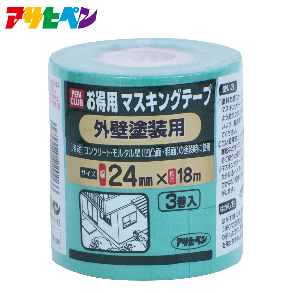 アサヒペン PCお得用マスキングテープ 外壁塗装用 24mm 3巻入り 、充てん材用 24mm 3巻入り 爆買
