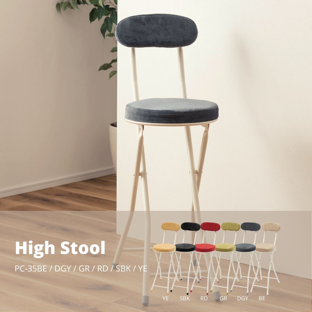 フォールディング ハイチェア ダークグレー 折りたたみ PC-35DGY 店舗 カフェ ラウンジ ロビー ホテル 法人 爆買
