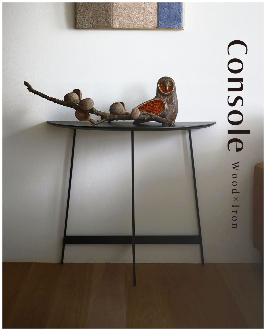 ●「美しい木目×アイアンレッグ」異素材の組み合わせが上品な印象のコンソール。