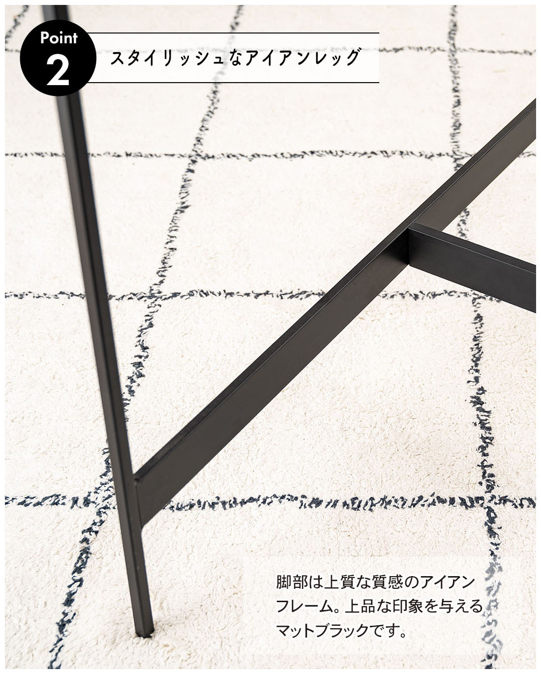 ●脚部は上質な質感のアイアンフレーム。上品な印象のマットブラック。