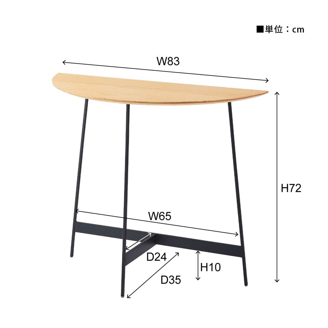 ●美しいシンメトリーフォルムで、天板が半円なので様々な場面で活躍。