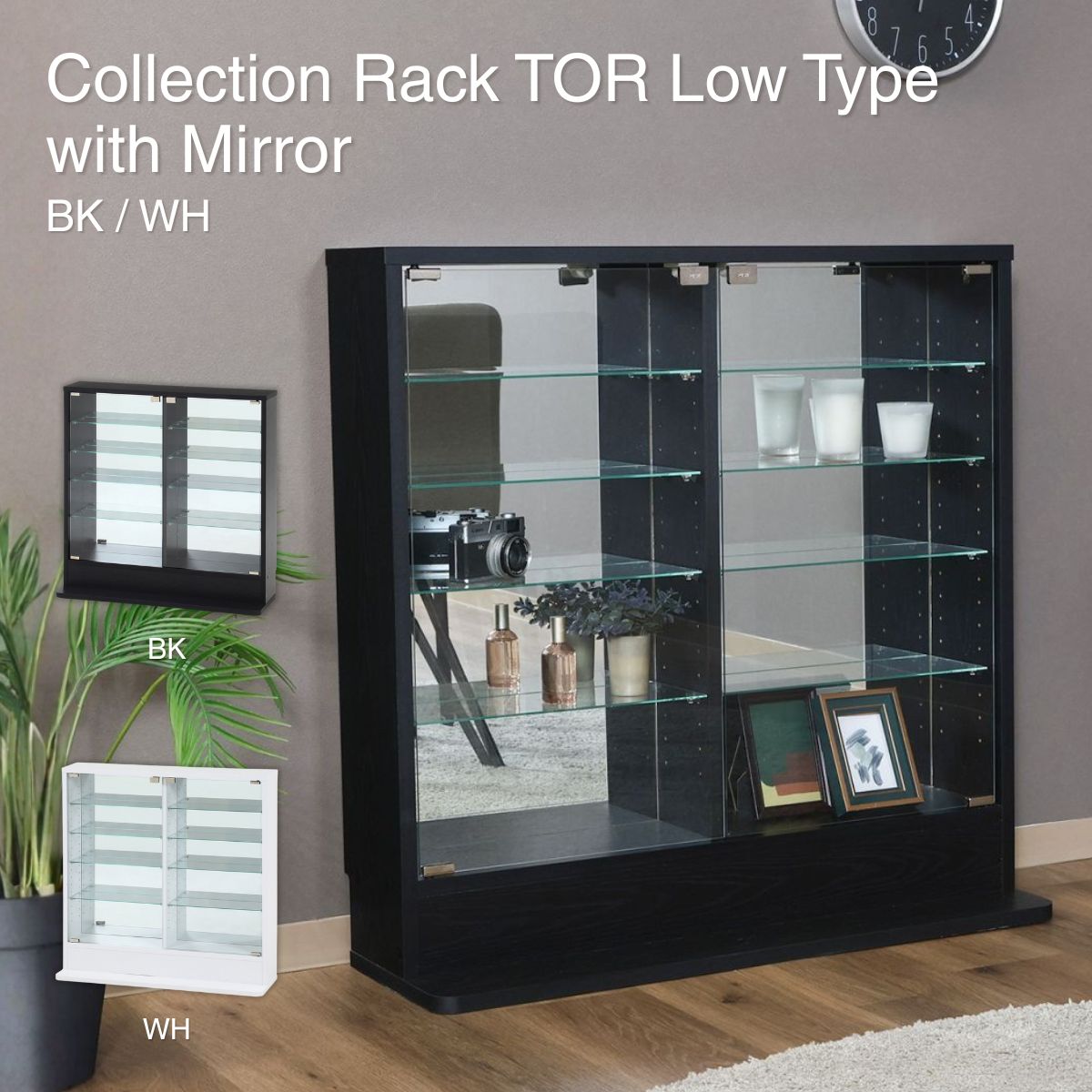 コレクションラック TOR ロータイプ ミラー付き ブラック ガラスキャビネット 背面鏡付き 推し活 BK 57083 爆買