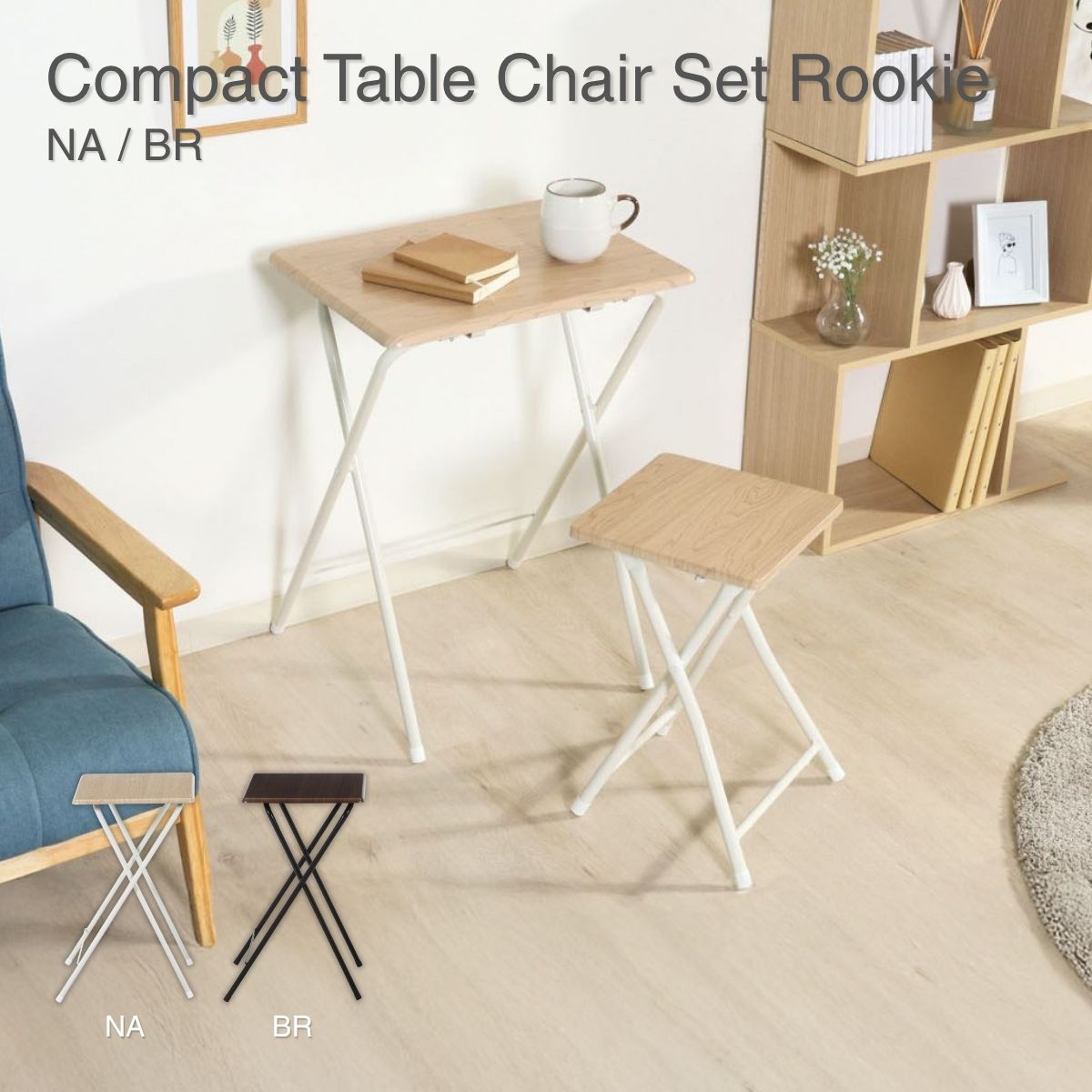折りたたみテーブル 折りたたみチェア コンパクトテーブルチェアーセット ルーキー ナチュラル フォールディングテーブル&チェア イス 椅子 机 デスク 85408