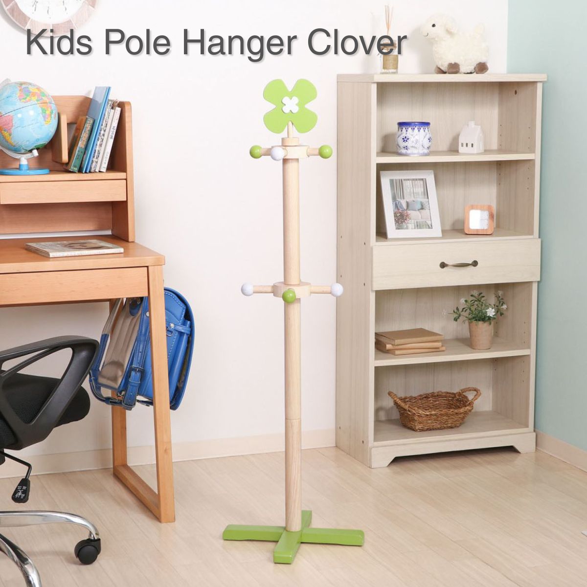キッズポールハンガー クローバー ライトグリーン ハンガーラック かばん掛け 帽子 ランドセル掛け 幅37×奥行37×高さ119.6cm 91798