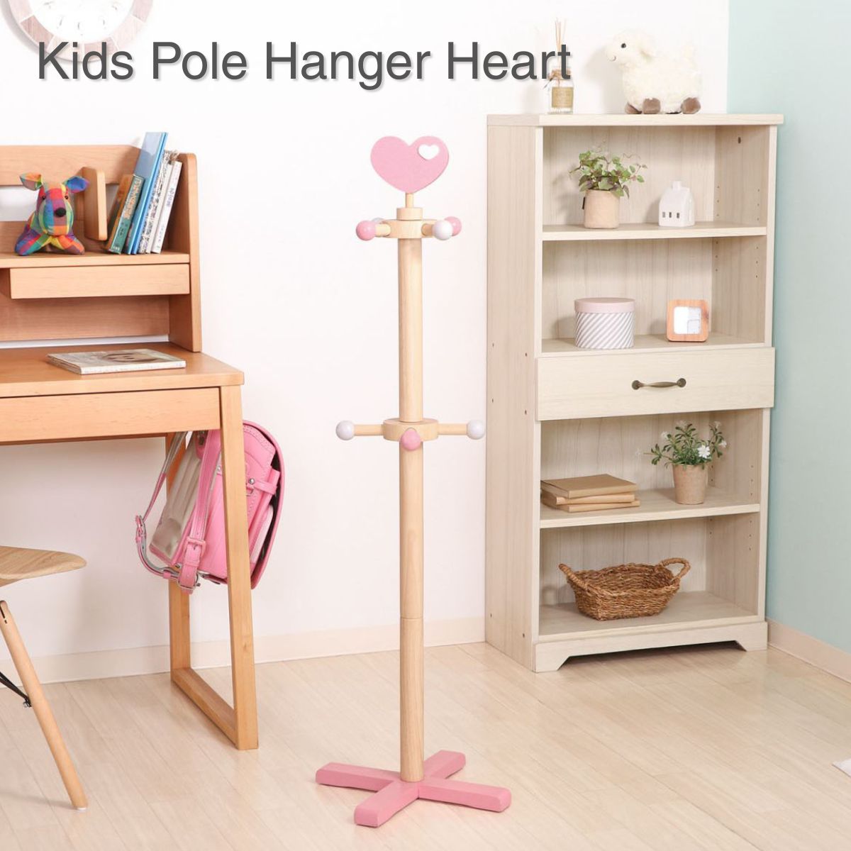キッズポールハンガー ハート ピンク ハンガーラック かばん掛け 帽子 ランドセル掛け 幅37×奥行37×高さ117.5cm 91799 爆買
