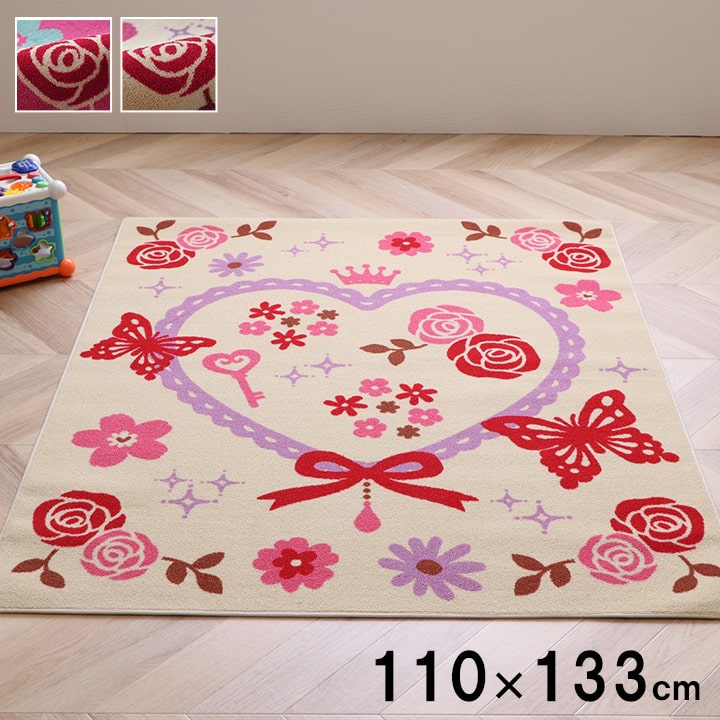 | 学習机用のデスクカーペットです。かわいらしいハート柄が特徴です。表地はループタイプになっており、毛足が短く掃除がしやすい仕様になっています。裏地には不織布を使用していますので、フローリングが傷つきにくいです。お子様の学習机の下や、ベッドサイドなどにお勧めの商品です。 |