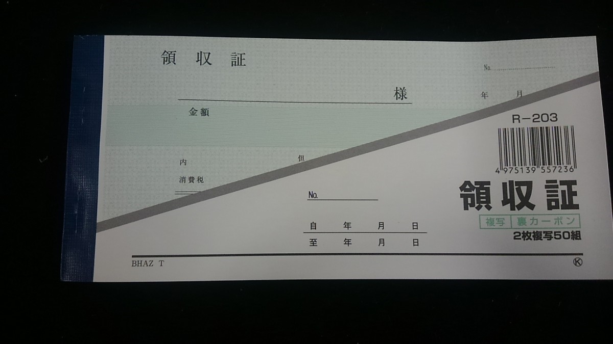 領収証1冊2枚複写50組です。日本製。 R-203。
