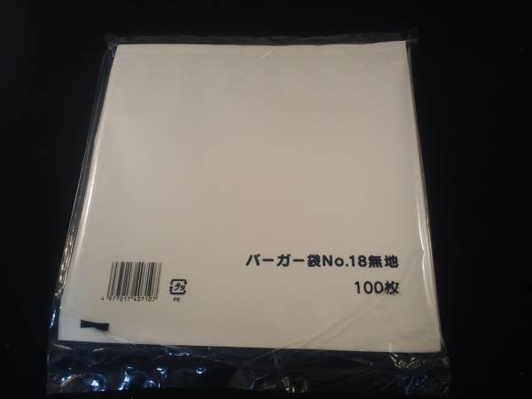 国産のバーガーNo.18無地1袋(100枚入り)です。日本製。 福助工業株式会社。
