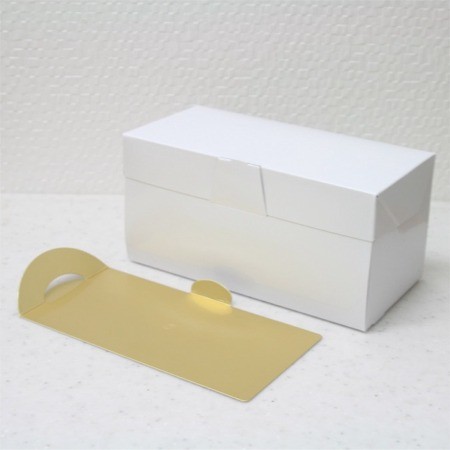 ロールケーキ等にぴったりなボックスと金紙トレーのセットです。保冷剤を入れることもできます。