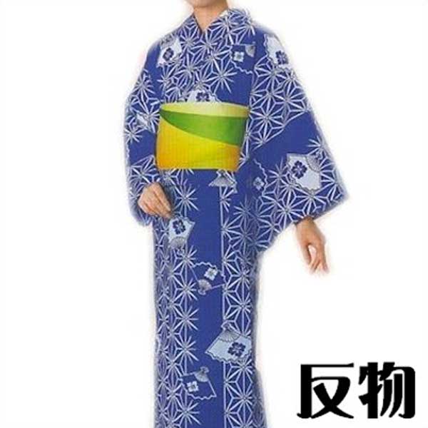 浴衣 反物 青 麻の葉 扇子 花菱 メンズ レディース 小紋 ゆかた 祭 (s洗2331) 未仕立て 生地 盆踊り 祭り 揃い 踊り まつり 取寄せ商品