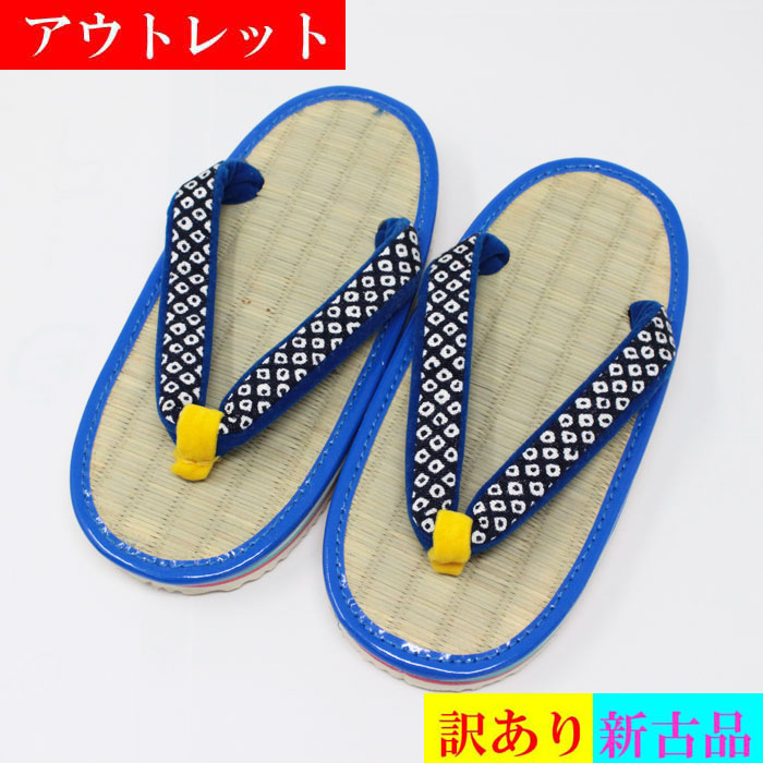 アウトレット 草履 いぐさ 青 子供 鹿の子 16.5cm 新古品 訳アリ いぐさ表 雪駄 厨房 館内 外履き 日舞 祭り 舞台 踊り 楽屋 和装 履物