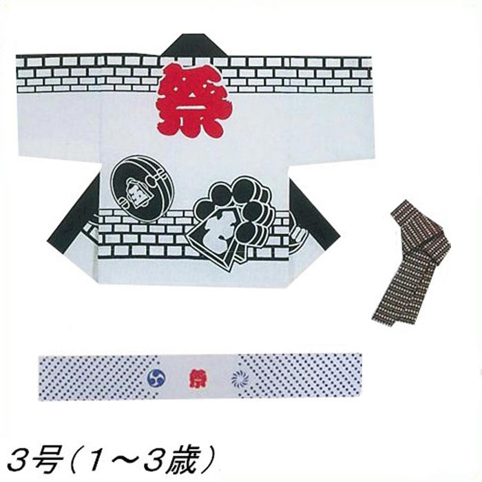 法被 子供 半纏 白 レンガ 纏 3号 1-3歳用 はっぴ ハッピ 祭 (s育9623-3号) よさこい まつり 祭り 袢纏 1点までメール便可