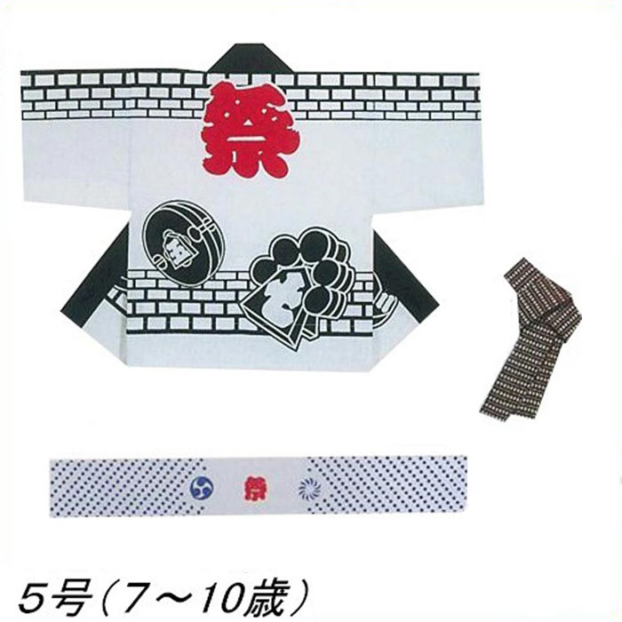 法被 子供 半纏 白 レンガ 纏 5号 7-10歳用 はっぴ ハッピ 祭 (s育9623-5号) よさこい まつり 祭り 袢纏 1点までメール便可