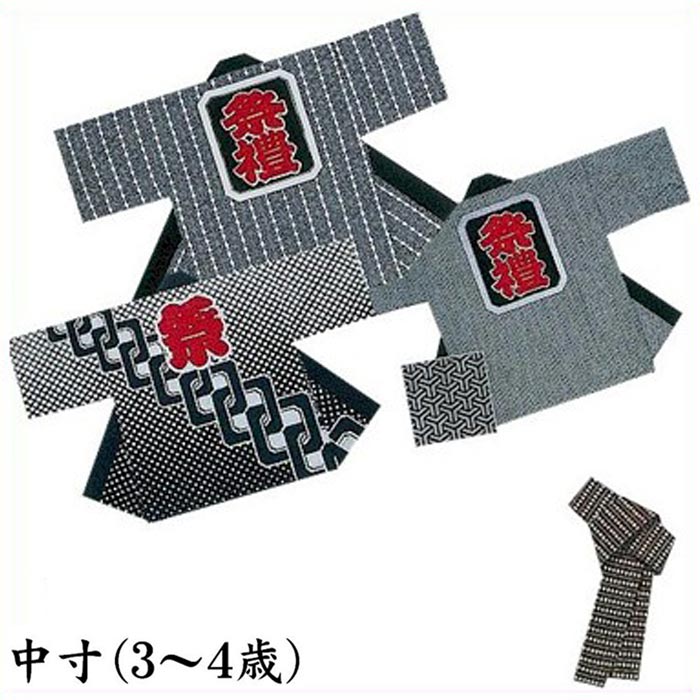 法被 子供 半纏 グレー 黒 濃紺 吉原つなぎ 中寸 3-4歳用 はっぴ ハッピ 祭 (sゆ9601-07-1) よさこい まつり 祭り 袢纏 1点までメール便可 取寄せ商品