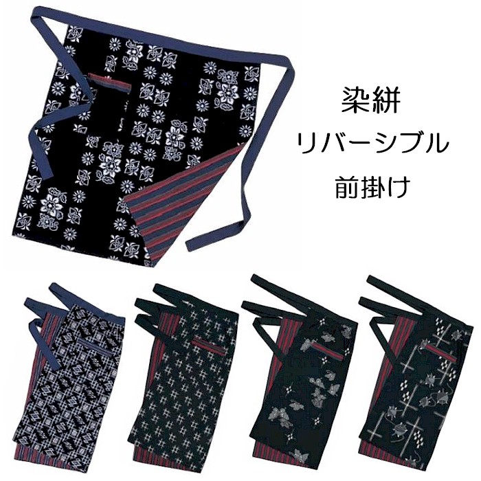 前掛け 前掛 和柄 リバーシブル 染絣 和食 和風 飲食店 割烹用 (o前5831-5923) エプロン まえかけ 料亭 割烹 小料理 1点までメール便可 取寄せ商品