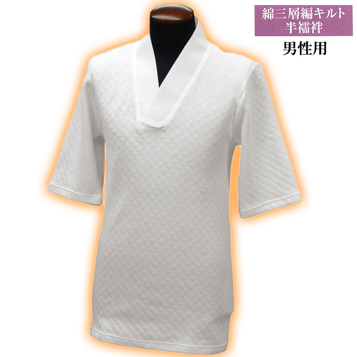 男性用 冬用 5分袖三層網キルト素材であたたか保温。肌にあたる部分は肌にやさしい綿100%Tシャツに和装衿を取り付けた神職・僧侶の方にお勧めの肌着です。襟元はマジックテープで調節が可能です。左右の打合せが無いため着崩れしにくく、洗濯機でも洗えるのでお手入れも簡単です。【素 材】本体:綿100% 中わた:ポリエステル100% 裏面:綿100% 衿:ポリエステル100%【サイズ】適応寸法:M寸胸囲88〜96cm L寸胸囲96〜104cm LL寸胸囲104〜112cm※お取り寄せ商品です。※ご注文後、通常7営業日以内に入荷予定です。※手配後のキャンセル、変更、返品はお受けできません。あらかじめご了承願います。※メーカー欠品の場合は、再度入荷予定のご連絡をさせていただきます。 またメーカー廃番の場合は、ご用意できない場合もございます。予めご了承お願い致します。【メール便対応可能】 ※ご注文時の配送方法で「メール便」をお選び下さい。■日時指定不可 ■同梱不可 ■代引不可 (代引きの場合は宅配便(通常送料)となります)■規定数超過不可 メール便についてのご注意をご確認のうえご注文をお願いいたします。