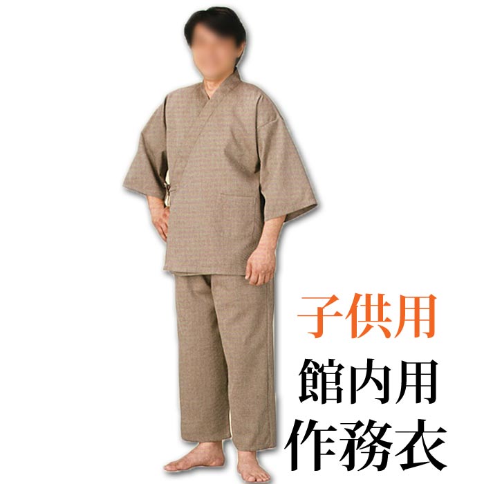 作務衣 館内用 無地 子供用 (s8904) 子供 館内着 部屋着 入院着 さむえ ユニフォーム 温泉 旅館 足湯 取寄せ商品
