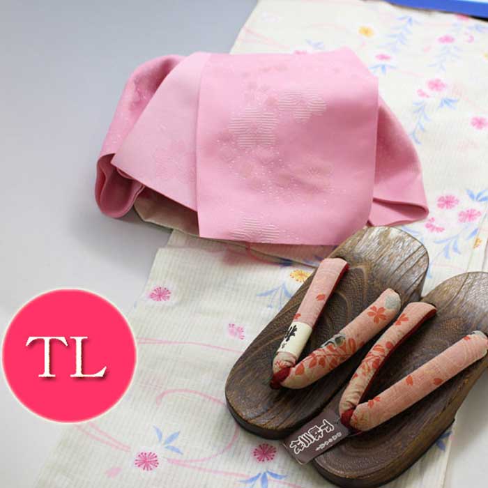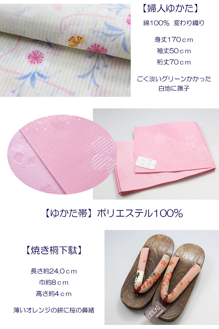婦人 ゆかた セット トールサイズ TL 薄 グリーン 白地 撫子 浴衣 ゆかた帯 下駄 3点 セット ZR