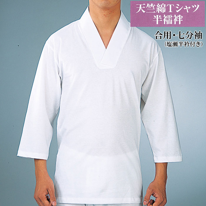紳士 綿 Tシャツ 半襦袢 合用 七分袖 半衿付き 天竺 o5202 僧侶 神職 はんじゅばん 男性 メンズ 肌着 取寄商品 1点迄メール便可 zrp