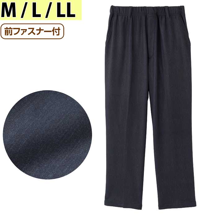 男性用 パンツ デニム調 裏ベロア らくらく (cf822079) 前ファスナー 消臭テープ ズボン 高齢者 紳士 シニア メンズ 介護用 秋冬用 ak23 25aw