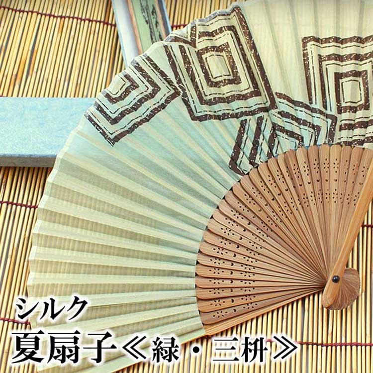 扇子 シルク 緑 三升 みます おすすめ 父の日ギフト せんす 夏扇子 メンズ 紳士