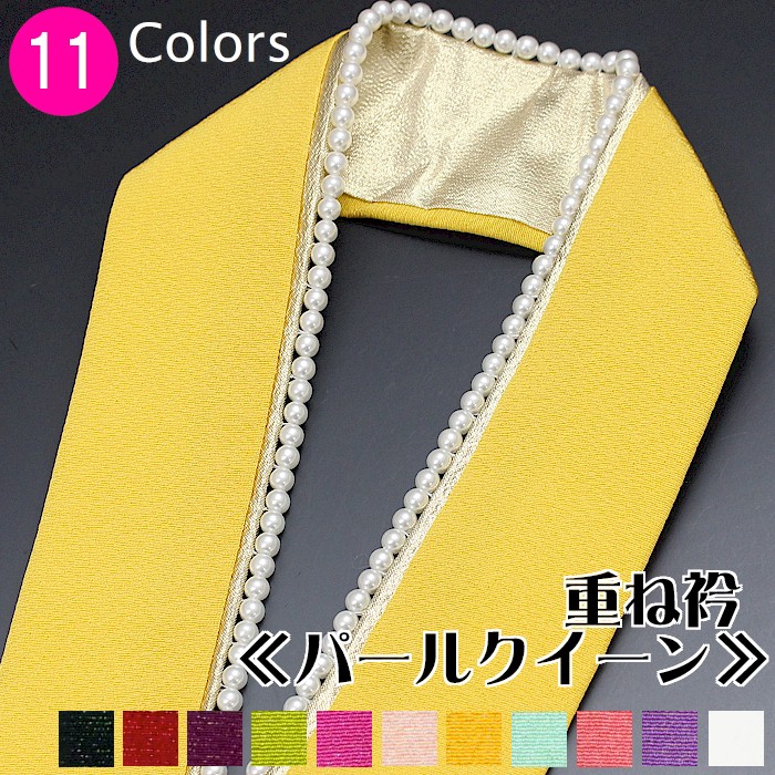 重ね襟 パール 伊達襟 パールクイーン リバーシブル 白 赤 黒 ピンク 緑 紫 黄 ブルー 振袖 卒業式 日本製 重ね衿 伊達衿 かさねえり 成人式 卒業式 振袖用