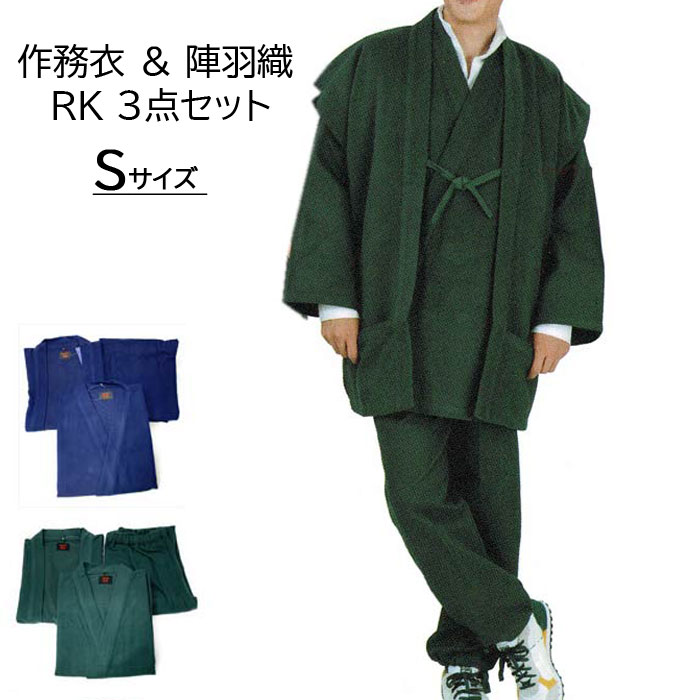作務衣 & 陣羽織 RK 3点セット ベスト パンツ おすすめ 父の日ギフト S 小さいサイズ 小柄 カジュアルウェア メンズ 男性 紳士 さむえ じんべい