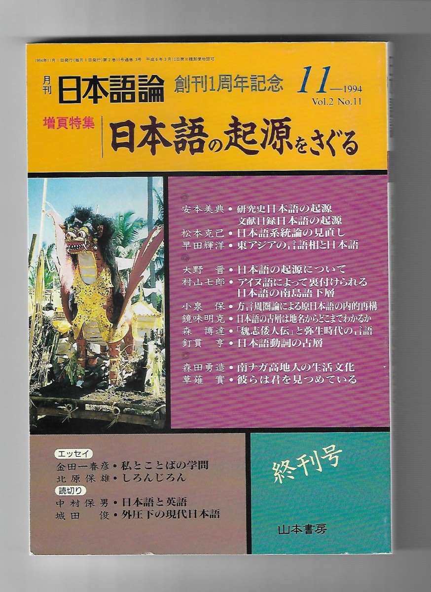 月刊日本語論:終刊号 増頁特集-日本語の起源をさぐる 1994年11月号