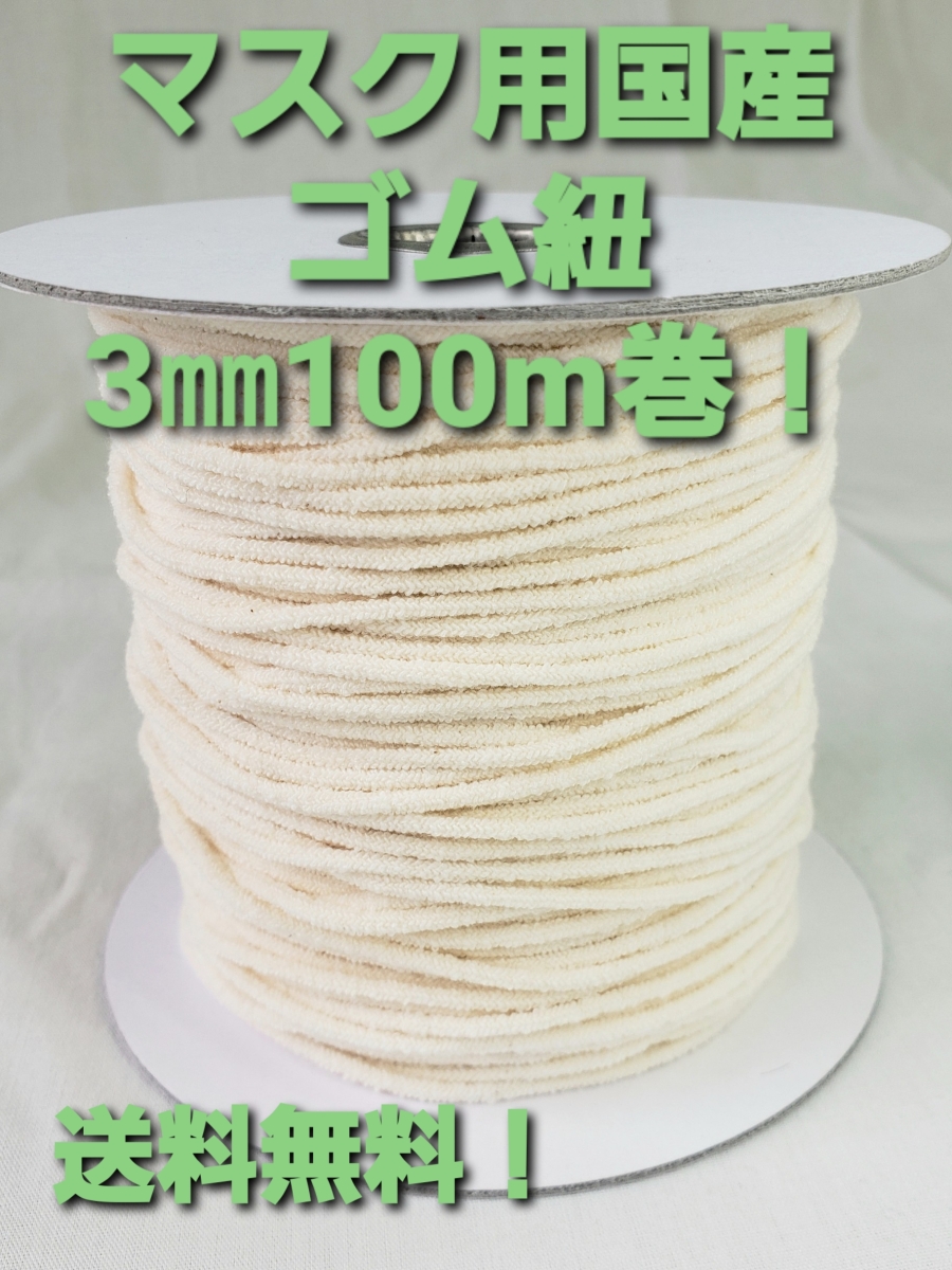 綿配合 マスク紐 丸ゴム紐 3mm100m巻