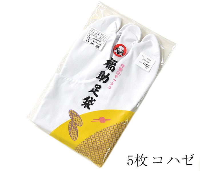 業界では最も定評のある福助の女性用白足袋。価格を抑えた普及版の晒裏5枚コハゼのタイプとなります。