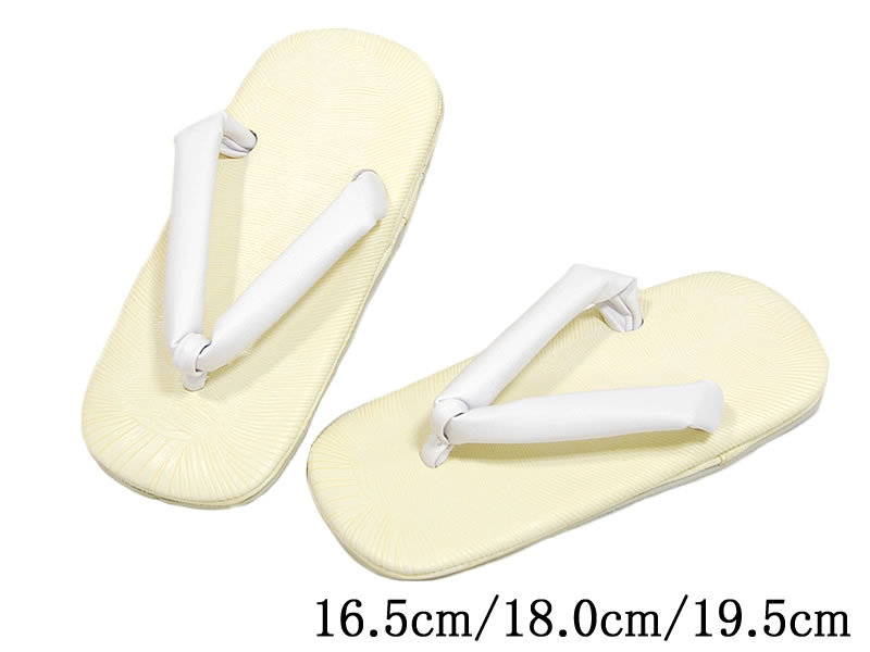 淡いクリーム色の台に、白色の鼻緒がすげられています。