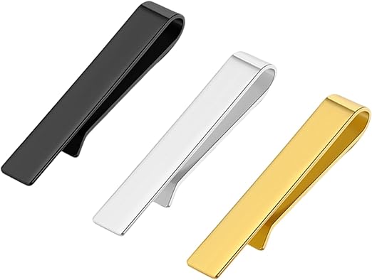 【セット内容】商品はゴールド、シルバー、ブラックの3本入りネクタイピン。ネクタイピンのサイズは4.8cm×0.8cmで、1本あたりの重量は約8gです。