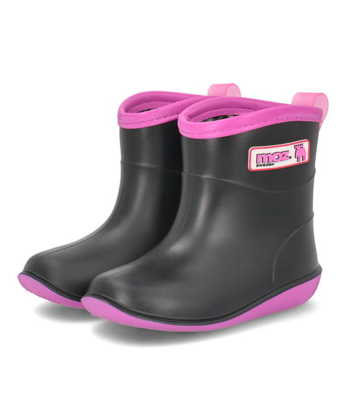 moz モズ キッズ レインブーツ 完全防水 長靴 レインシューズ MZ-8207 EC ブラック ピンク