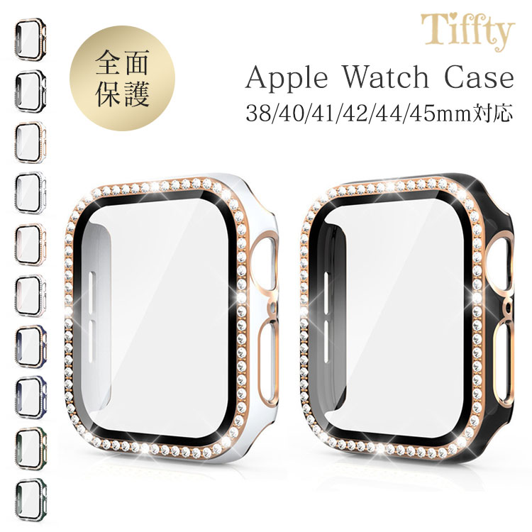 アップルウォッチ カバー 8 7 キラキラ Apple Watch ケース 可愛い 45mm 44mm おしゃれ ガラスフィルム レディース 41mm 42mm 40mm 38mm 全面保護 ゴールド