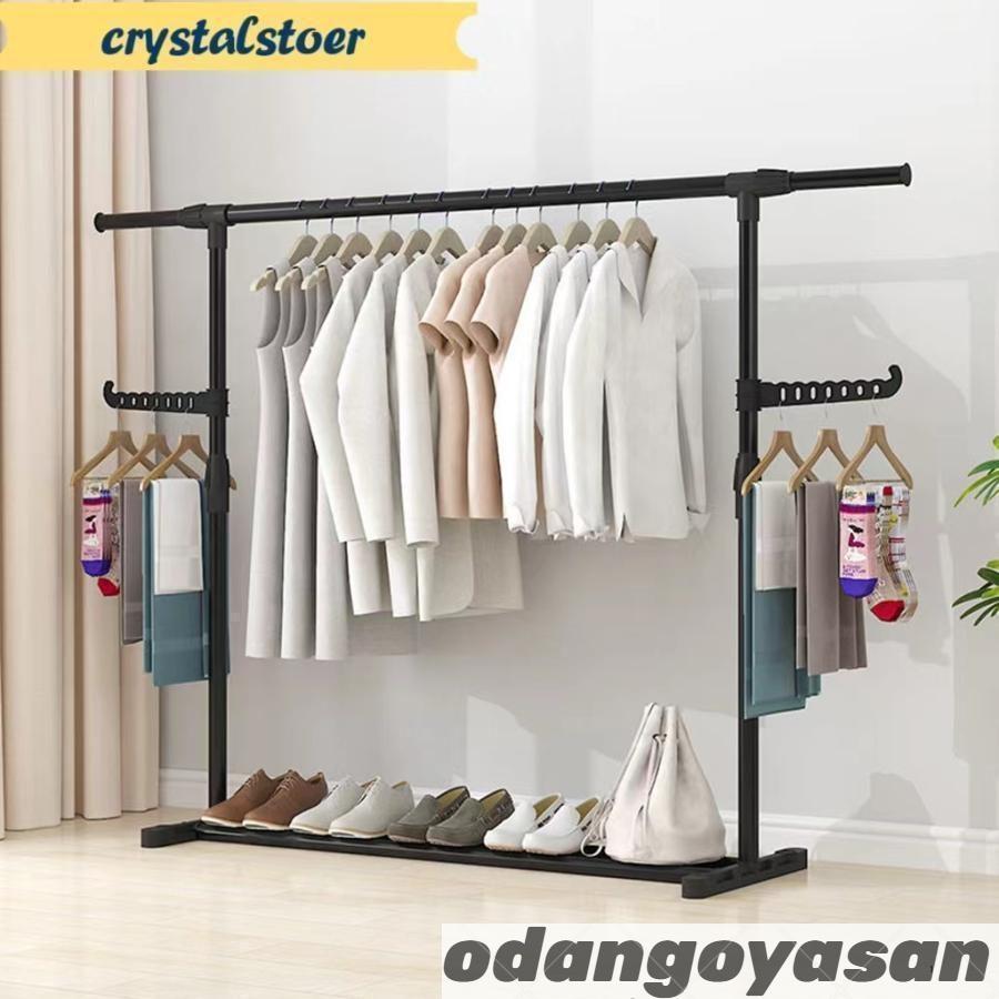 2023新作 ハンガーラック フック付き 衣類収納 洋服掛け 高耐荷重 大容量 頑丈 2段 シンプル ナチュラル 多機能 パイプハンガー crystalstoer-A08