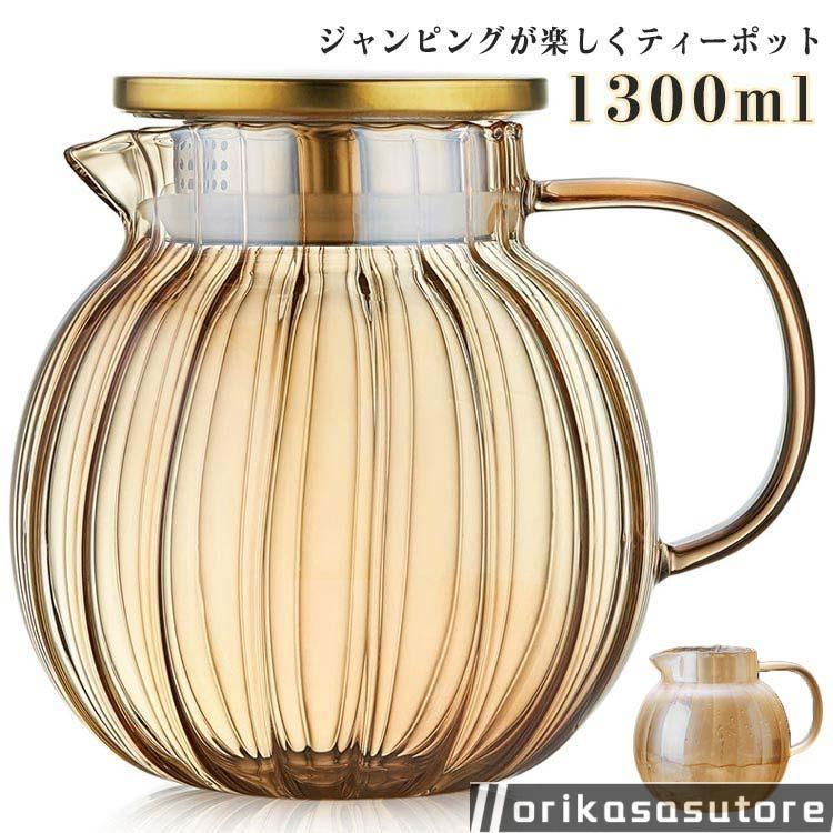 ティーポット カボチャ ガラス 耐熱ガラス 急須 1300ml ティーフォーツー ガラス製ポット 直火 直火対応 カボチャデザイン 紅茶 フルーツティ