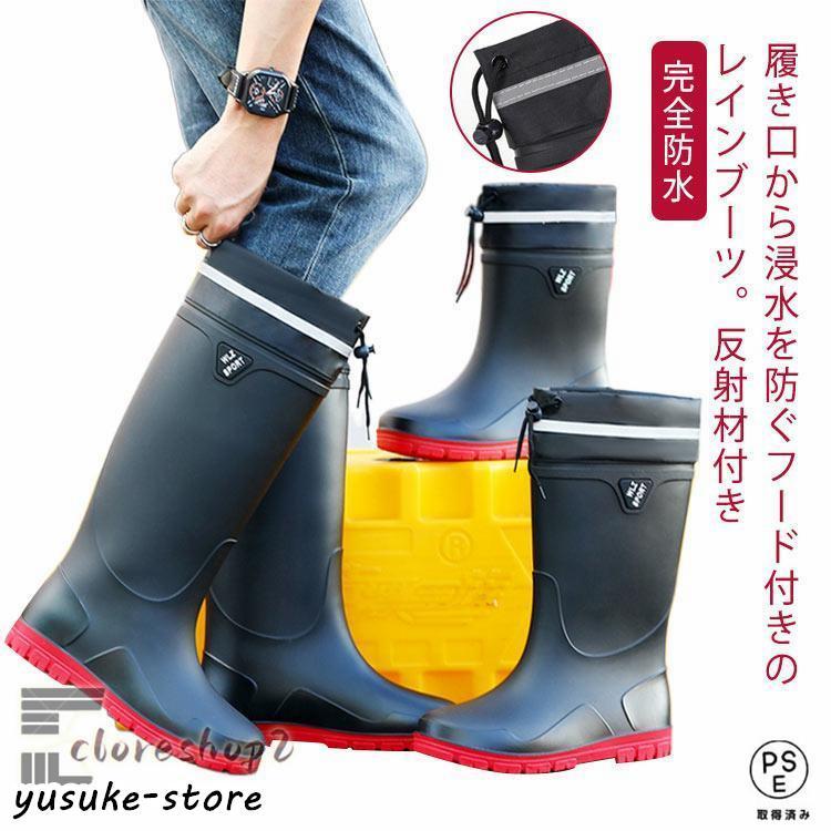レインブーツ ブーツ 完全防水 メンズ おしゃれ レインシューズ 男性 アウトドア ロング レインブーツ 防滑 長靴 紳士 防寒 防水 長靴 丈 雨