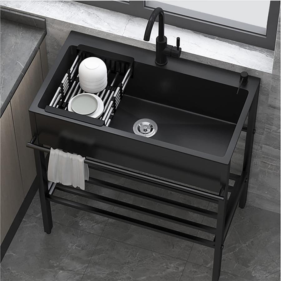 ブラック キッチン シンク ステンレス スチール シンク ガーデン シンク 業務用シンク 引き出し式蛇口付き キッチン シンク 工場 屋外 ファーム