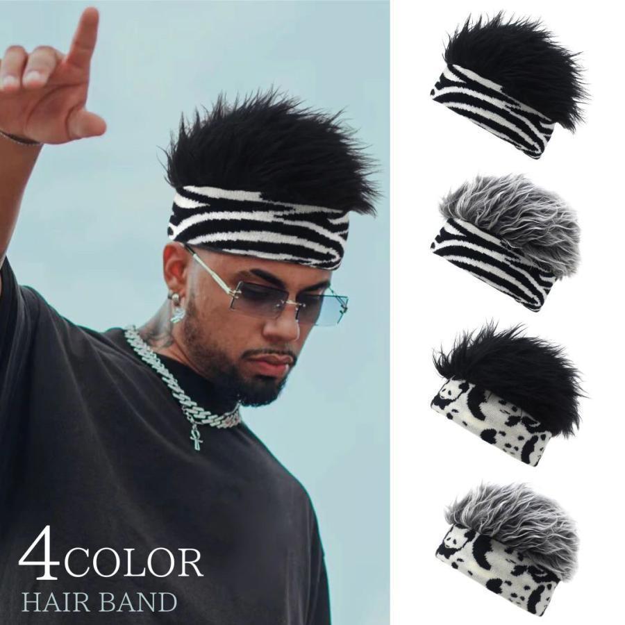 サンバイザー ヘアバンド付き メンズウィッグ 4色カラー 帽子 ゼブラ シルバーヘアー フレアバイザー かつら ウィッグ メンズ ヘア バイザー 髪の毛