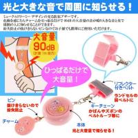 危険を感じたらチャームを引っ張るだけで90dBの大音量の音が鳴り大きな音と光で周囲の人に知らせることができます。