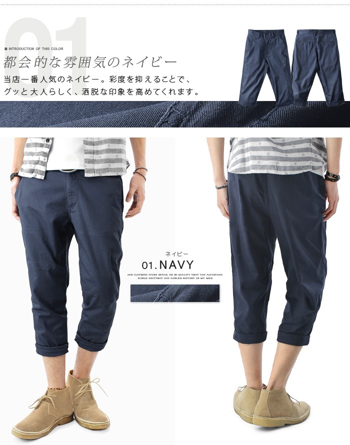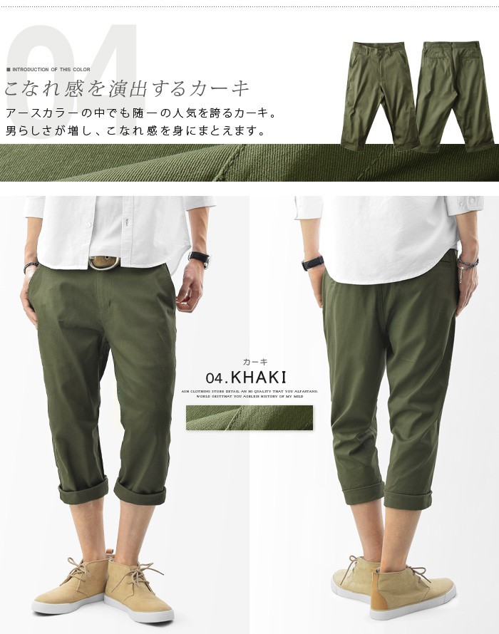 クロップドパンツ メンズ チノパンツ クロップド丈 スリム テーパードパンツ 7分丈 ロールアップ