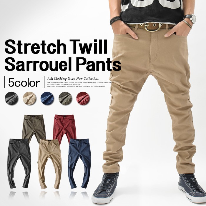 【ストレッチ入り スリムテーパー サルエルパンツ 全5色】